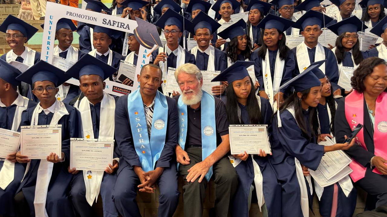 Debout, élèves d’Akamasoa, et avancez ! Ne reculez pas, car nous ne serons jamais découragés parce que l’Esprit et la force de Jésus, nous protège.